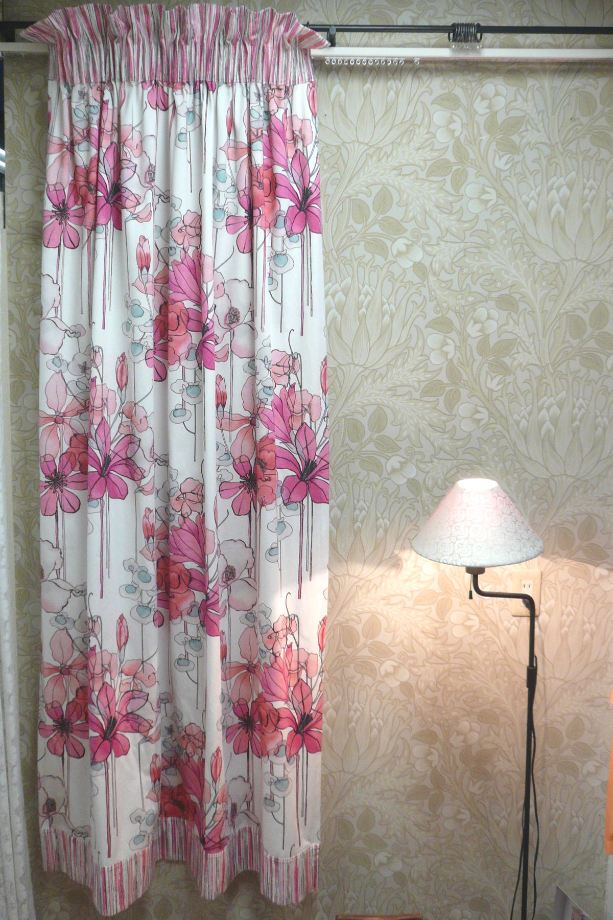 ブルー&ピンクトップフリルスタイルカーテン
